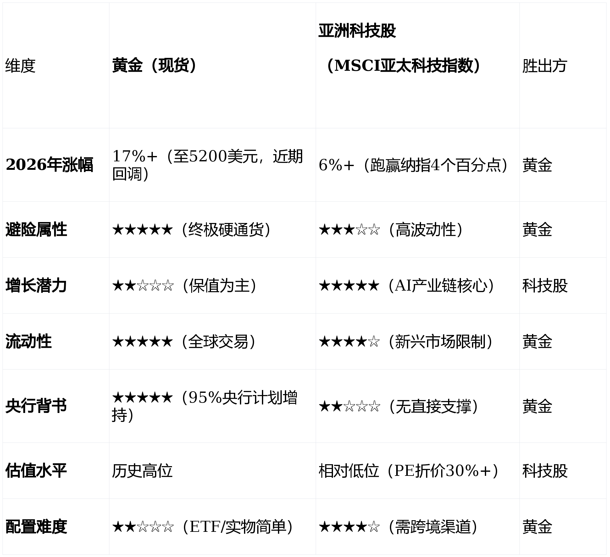 三、资产对比:黄金vs亚洲科技股,谁是真避险?